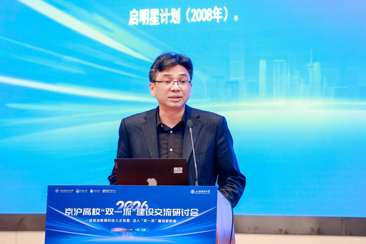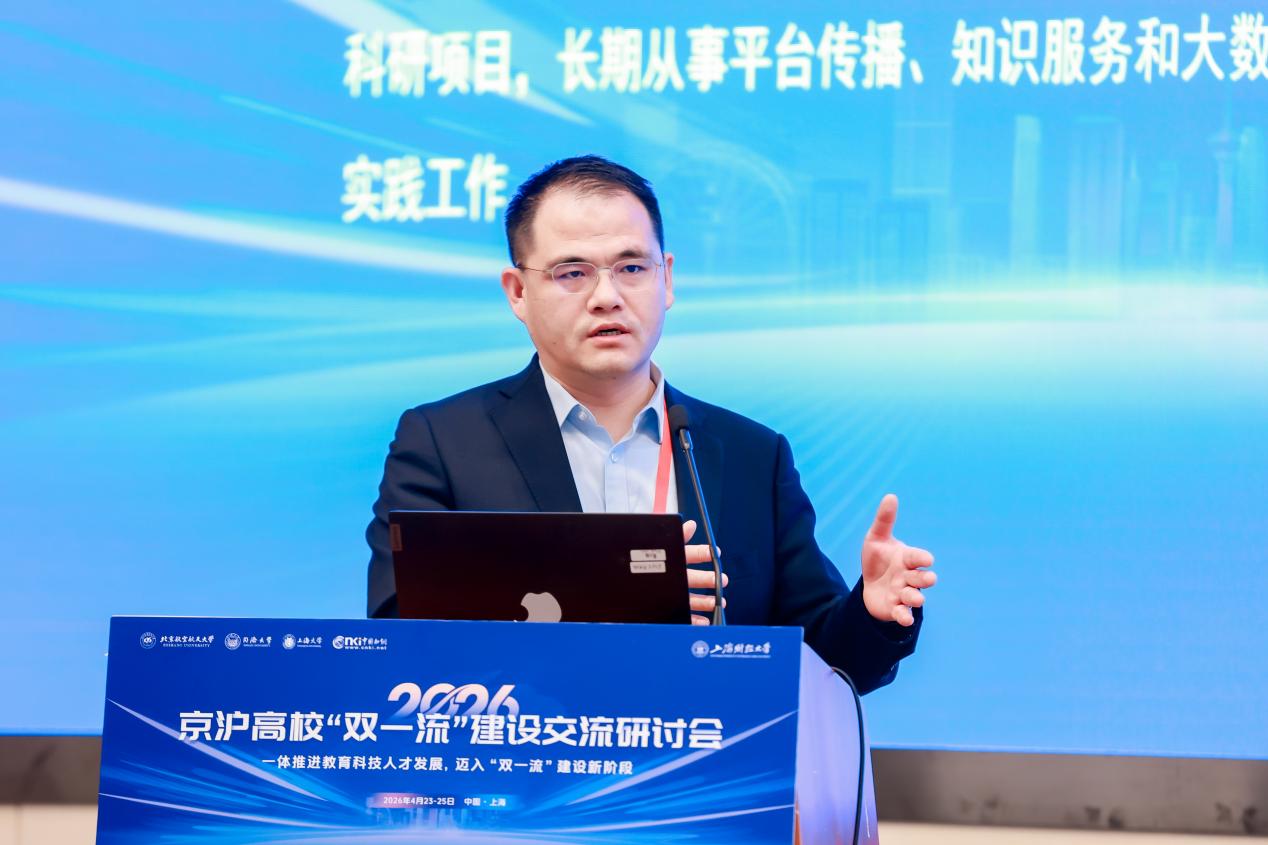 4月24日,由北京航空航天大学计划财务部、同济大学发展规划与学科建设部、上海大学发展规划部、中国知网联合主办,我校发展规划处、北京研究院承办的2026年京沪高校“双一流”建设交流研讨会在科研实验大楼成功举行。来自上海交通大学、北京航空航天大学、同济大学、中国农业大学等全国各地高校的150余位专家学者齐聚一堂,共同擘画新一轮“双一流”建设新图景。