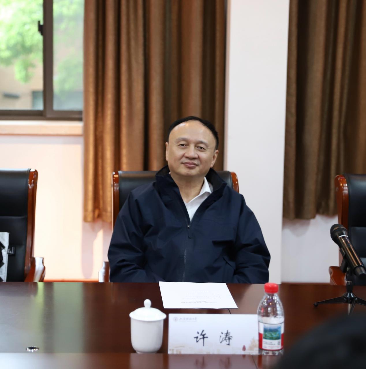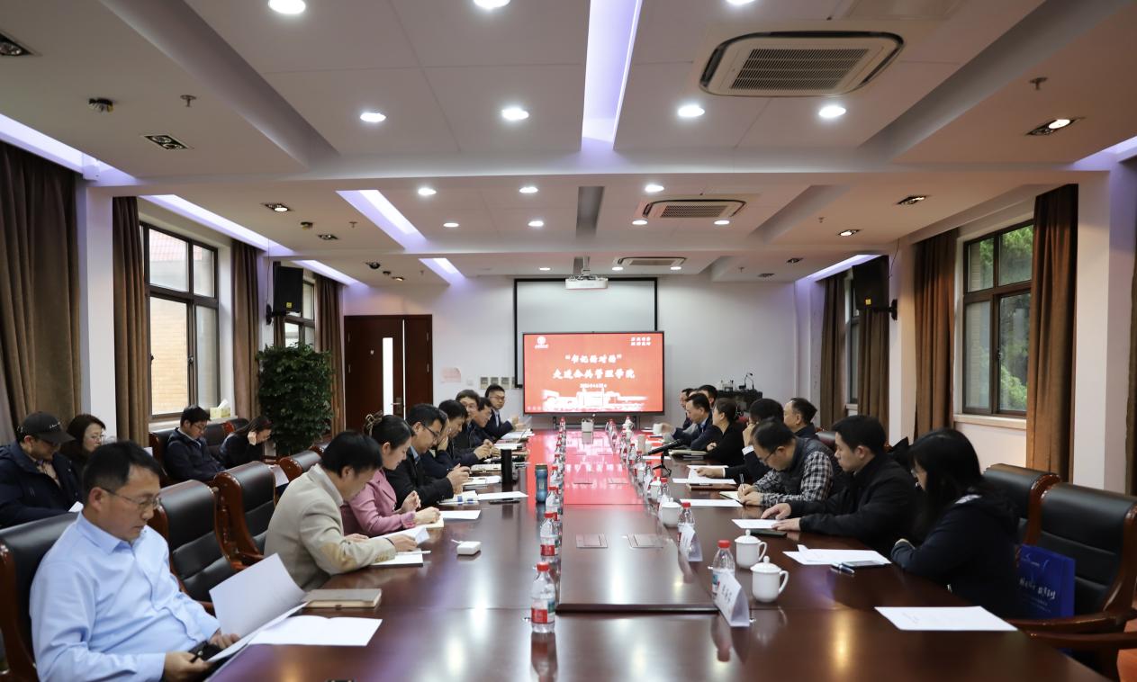 学院党委书记刘兵勇代表学院对许涛书记一行的到来表示热烈欢迎和衷心感谢。学院院长张熠围绕学院发展作工作汇报。他重点介绍了学院在党建思政、内部治理、学科建设、师资队伍、人才培养、科学研究等方面的阶段性成效。他表示,公共管理学院在学校党委的坚强领导下,聚焦国家重大战略需求与新文科建设前沿,定位建设扎根中国大地、具有全球视野、融合财经特色的卓越公共管理教育与研究平台。下一步,学院将紧密对接“三基两柱”评价导向,系统谋划学科发展战略与人才培养体系创新,提升学术影响力与社会传播力。同时,他也提出了学院在发展过程中面临的一些现实挑战和问题。