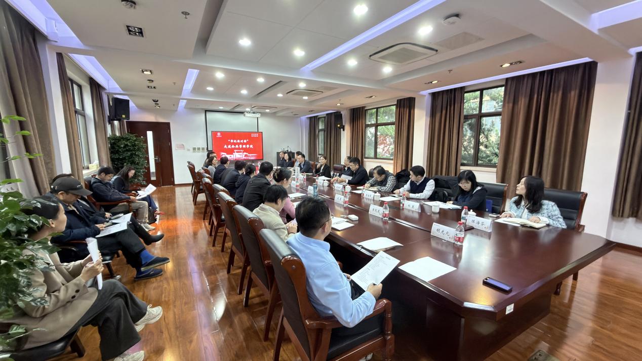 交流互动环节,学院班子成员、系主任、学术骨干与职能部门负责人深入交流,围绕内部治理完善、本科专业转型、交叉学科建设、智库成果转化、国际化办学、自由贸易区研究院体制机制优化等问题充分沟通。