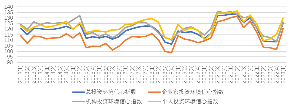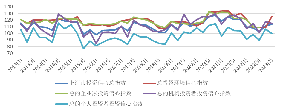 图2 上海市投资者信心指数2013年第1季度至2023年第1季度核心指数运行情况图