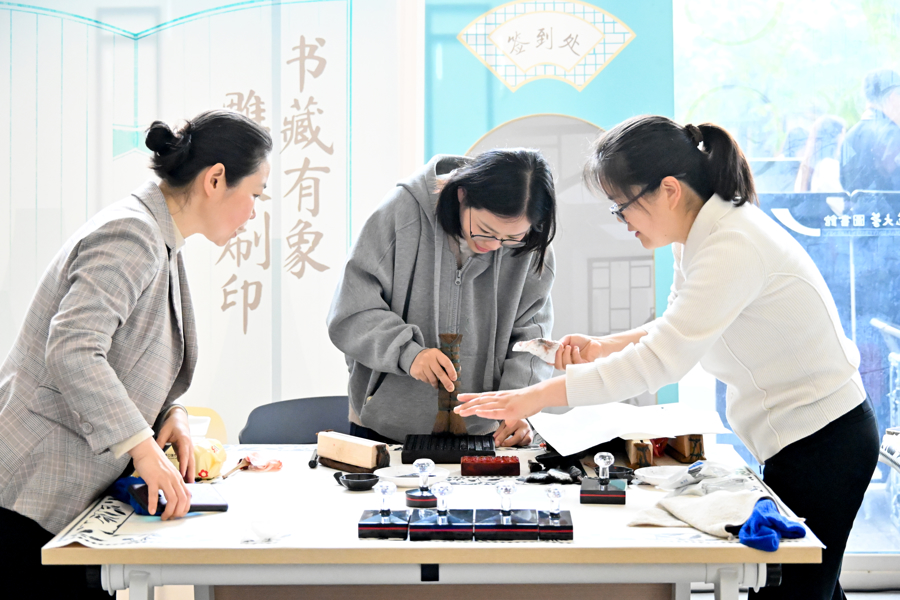 上海师范大学在徐汇、奉贤两校区同步开展书香音乐竞猜、学思新书闪借、雕版刷印、古籍句读挑战、非遗漆扇体验、聊斋改编创作、春景书香手作、教工阅读一小时等线下特色活动,吸引广大师生踊跃参与,在沉浸式体验中感受传统文化魅力与阅读之美。