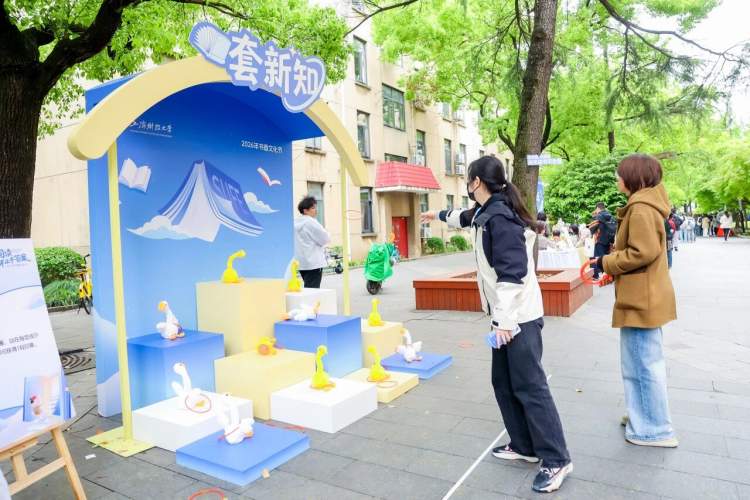 沿着步行街一路前行,趣味闯关、收集印章、解锁福利,在书香与人群交织的氛围里,上财师生慢慢走进这场“悦”读的世界,他们穿梭在各个趣味互动环节之间,套新知、夹书签、猜书名,登上今日“上财头条”,既在比拼中收获了快乐,也在轻松的氛围里解锁文学知识。