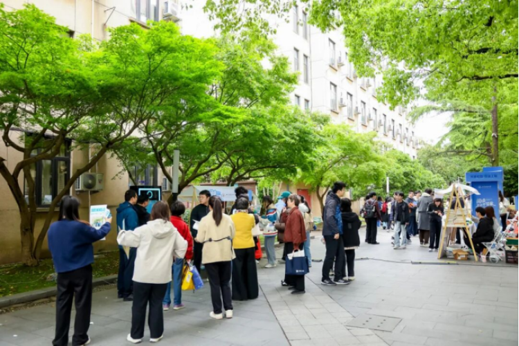 活动现场,阅读不再局限于书页之间,而是变为一场可逛、可玩、可分享的校园体验。创意市集与奇趣活动交织,文艺长廊里藏满惊喜。图书馆、档案馆(校史馆)/博物馆、出版社、校团委、合作发展处、上海话剧中心等单位联合举办了书香雅集。在“校董荐书”“所荐即所读”“SUFE博物悦读”“换书市集”以及学生社团等特色展位前,同学们亲身感受着传统雅趣与现代文创的碰撞。