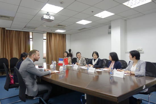 上海财经大学临港合作办公室主任陈选娟、国际交流与合作处副处长于洪和商学院iMBA项目主任陈晰陪同会见。