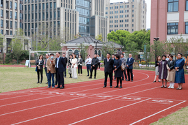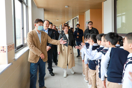 许涛书记一行全体人员参加上财附小升旗仪式,观摩早操活动和课堂教学,并参观学校主楼活动厅、室内体育馆、图书馆、文化连廊、功能教室等,实地感受学校基础设施、校园环境和文化建设。