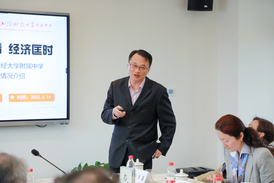 国际教育学院院长沈晖向与会领导介绍学院办学情况。他表示,上财历来具有国际化办学基因和特色,希望附属高中与学院在目前良好互动沟通的基础上加深合作,学院也将不遗余力地为附属学校国际化办学特色和高中多元化升学提供路径与资源支持。