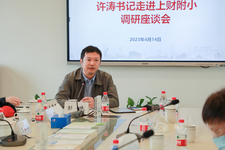 4月14日上午,为全面了解和推进大中小学思政课一体化建设和学校基础教育工作,校党委书记许涛走进上海财经大学附属杨浦区国安路小学开展实地调研,现场召开书记调研会。校党委常委、副校长方华,党委副书记、纪委书记何鹏程,校党委常委、宣传部部长、马克思主义学院院长章益国,党委校长办公室、基础教育集团、工会、档案馆(校史馆)/博物馆、国际教育学院、招生就业处、高等教育研究所等部门负责人、附属学校校领导参加调研。