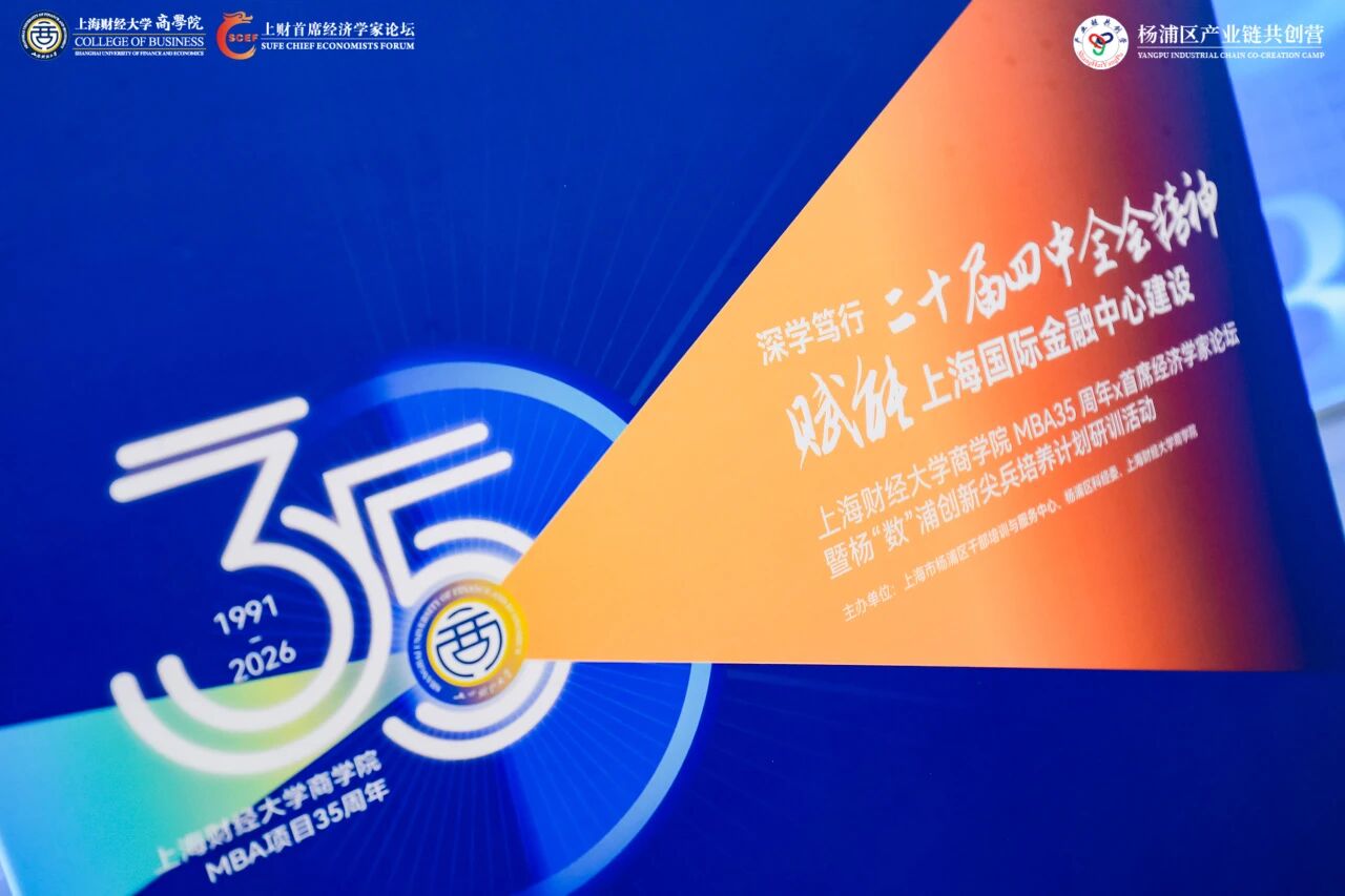 2026年1月9日,由上海财经大学商学院、上海市杨浦区干部培训与服务中心、杨浦区科技经济委联合主办的 “深学笃行二十届四中全会精神·赋能上海国际金融中心建设——上海财经大学商学院MBA35周年×首席经济学家论坛暨杨‘数’浦创新尖兵培养计划研训活动”在上海财经大学科技园国际会议中心举办。活动汇聚政、校、企三方智慧,围绕宏观经济前瞻、区域金融创新与高素质人才培养展开深度对话,共同探索经济高质量发展与商学教育改革的协同路径。